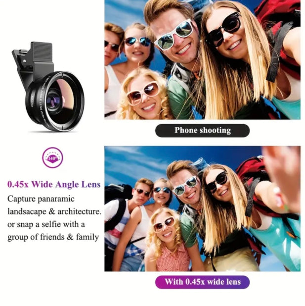 Expand your creative possibilities and capture the world like never before with our Wide‑Angle + Macro Phone Lens Kit. Designed for both Android and iOS smartphones, this versatile kit includes a 0.45× super wide‑angle lens for breathtaking landscapes and group shots, plus a 12.5× super macro lens for up‑close details you never thought possible.